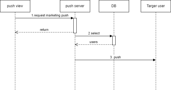 0. push view에서 마케터가 타겟팅 푸시(targeting push)를 설정 예약 한다.